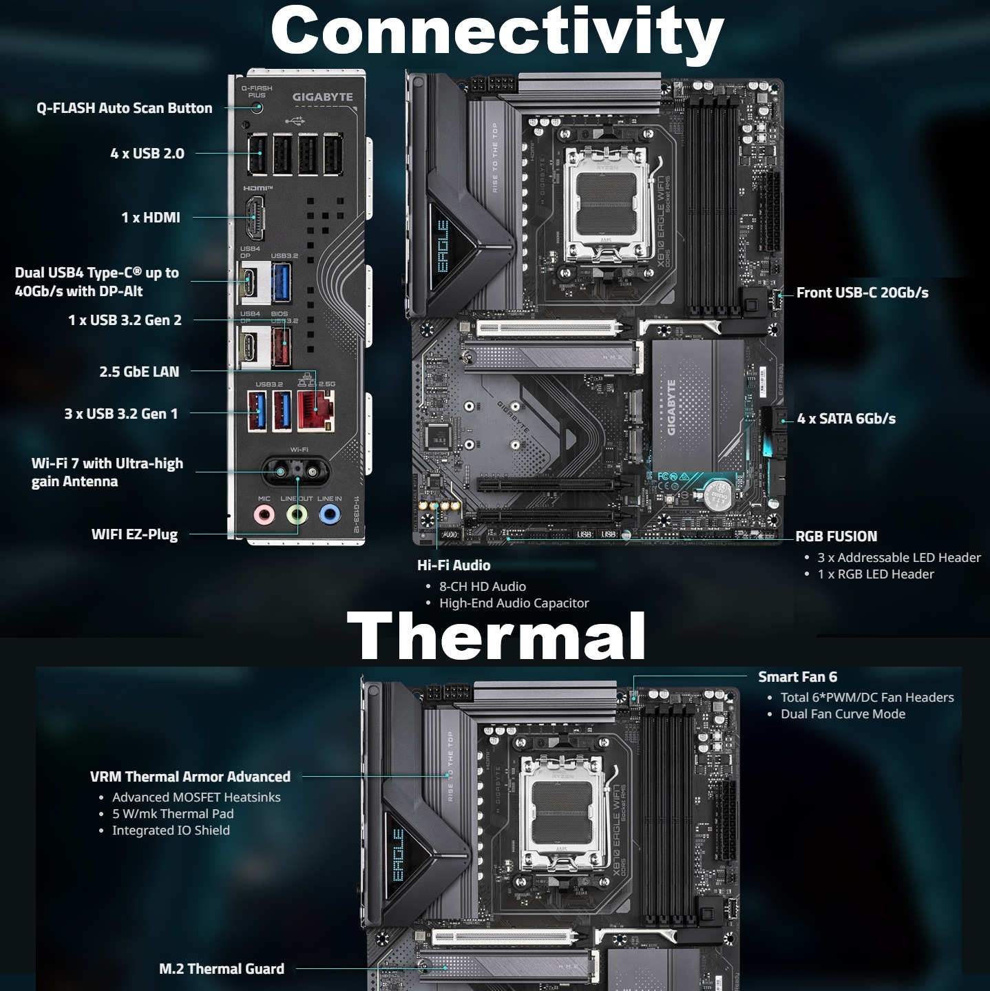 - Wi-Fi 7 + 2.5GbE LAN: Lightning-fast, low-latency networking for gaming, VR, and cloud-level file transfers.
