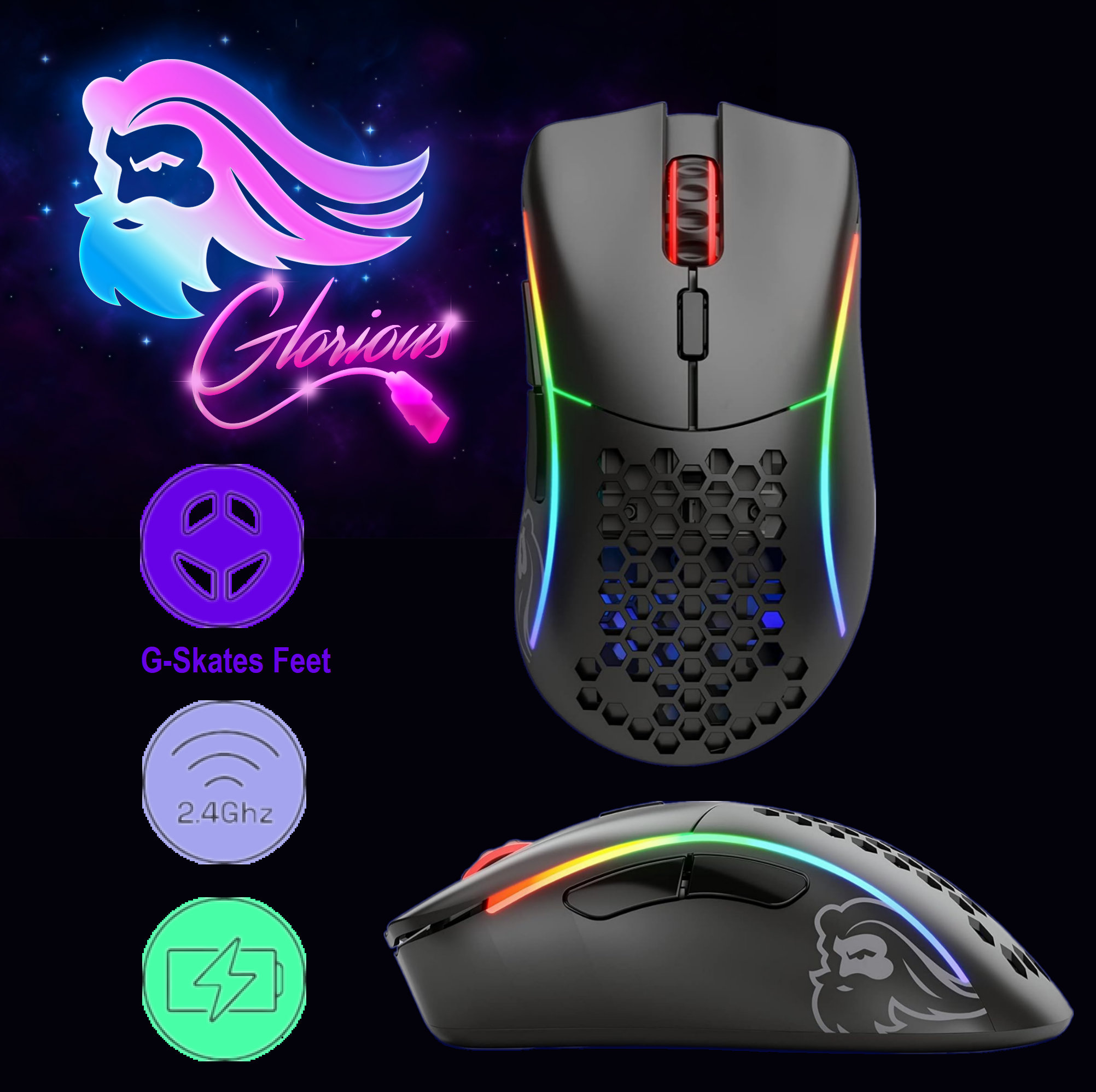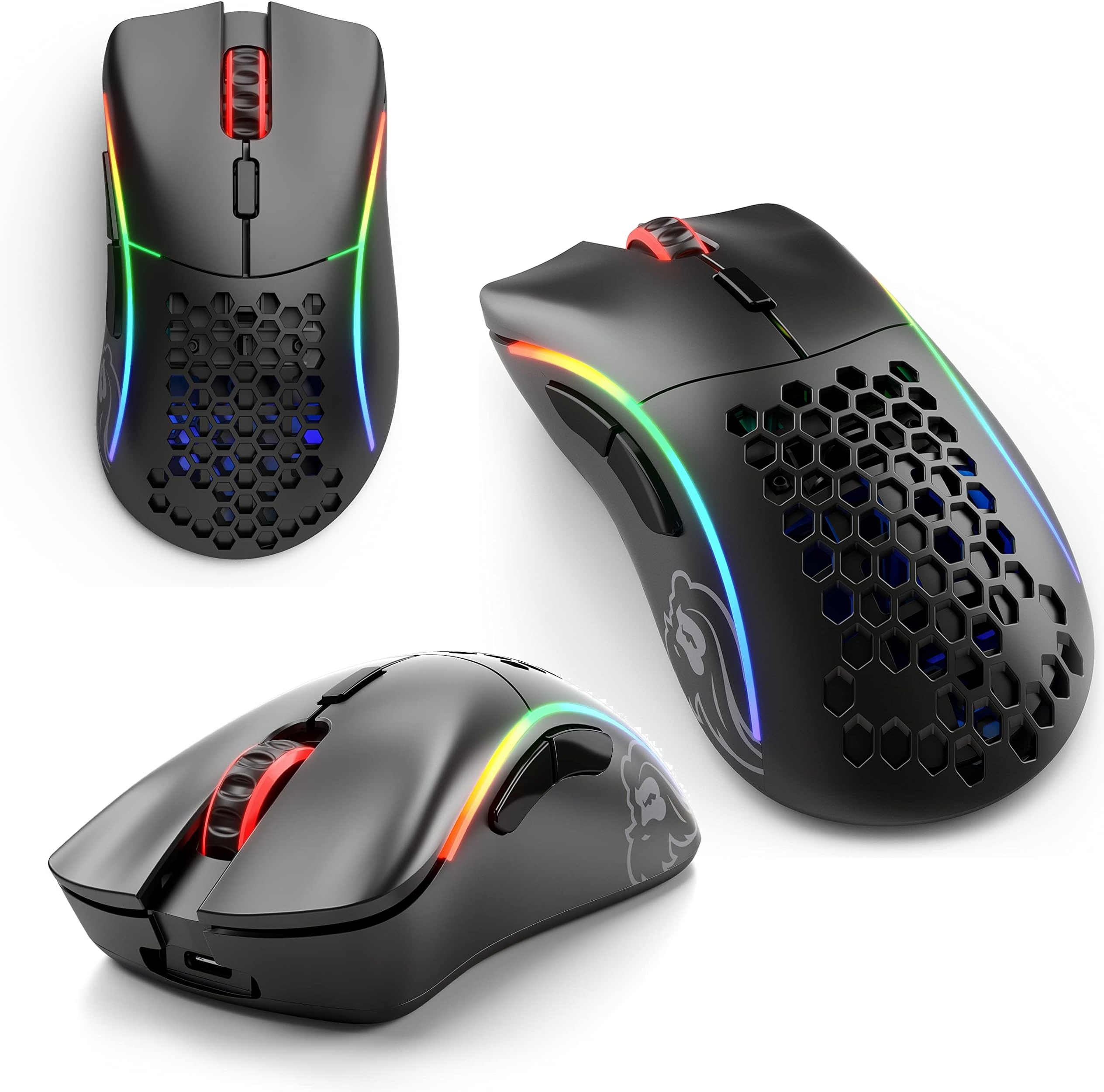 Glorious Model D- (Minus) Wireless RGB Gaming Mouse – 67g Superlight Honeycomb Design, Right-handed ergonomic shape, Lag Free 2.4GHz Wireless, Super Durable Battery | Matte Black GLO-MS-DMW-MB