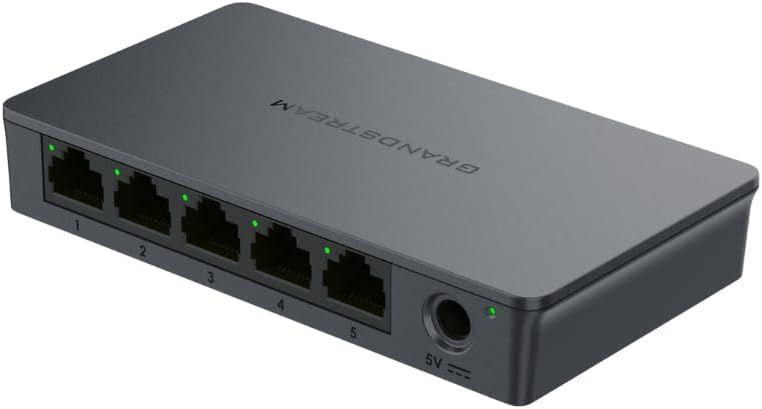 Grandstream GWN7700 5-Port Unmanaged Gigabit Ethernet Switch, 5× RJ45, Plug & Play, Green Technology, QoS, Desktop or Wall Mount
