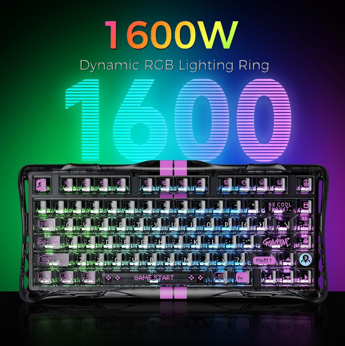 GravaStar Mercury V75 Lite Transparent 75% Keyboard with RGB Blackcore HE Magnetic Switch Keyboard, Wired Low-Latency, 0.01mm Precision, Adjustable Actuation, Rapid Trigger, Hot-Swappable, Windows & macOS ,| Transparent Black