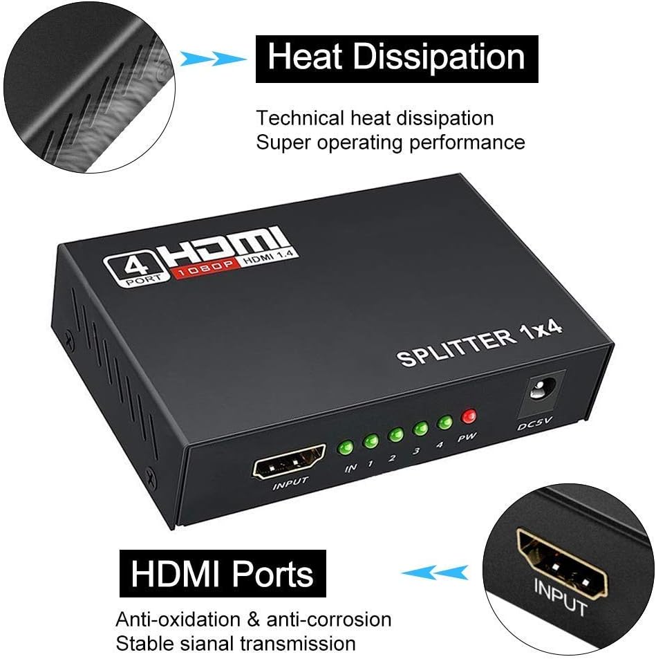 - This HDMI Splitter takes audio and video signal from one source and simultaneously outputs them to four HDTVs or HDMI displays.