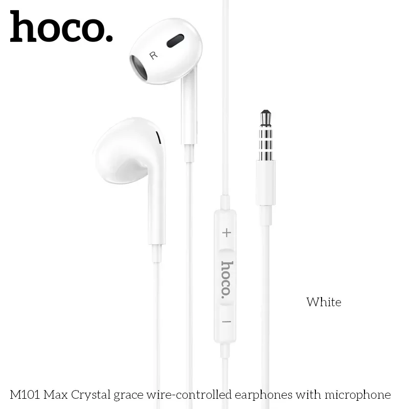 Hoco M101 Pro – Crystal Sound Wire-Controlled Digital Earphones With Microphone, AUX Plug, Cable Length: 1.2m, WHITE, Wired