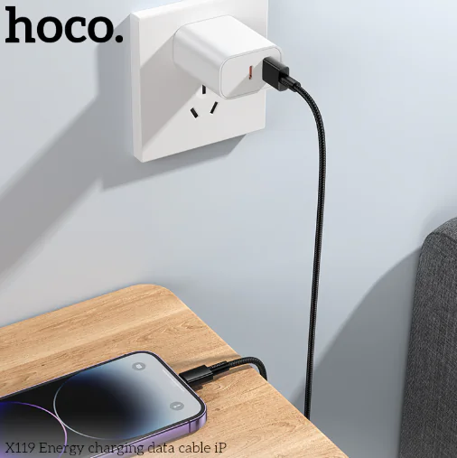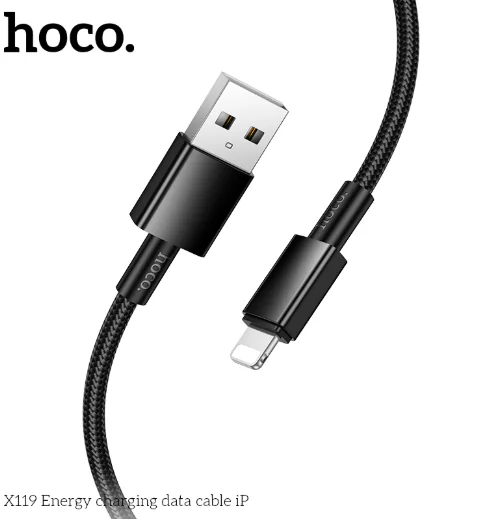 HOCO X119 USB to Lightning Cable | 1m (3.28ft) Nylon Braided | Fast Charging 2.4A | Anti-Bending, Aluminum Alloy Shell | Durable, Safe & Tangle-Free Design