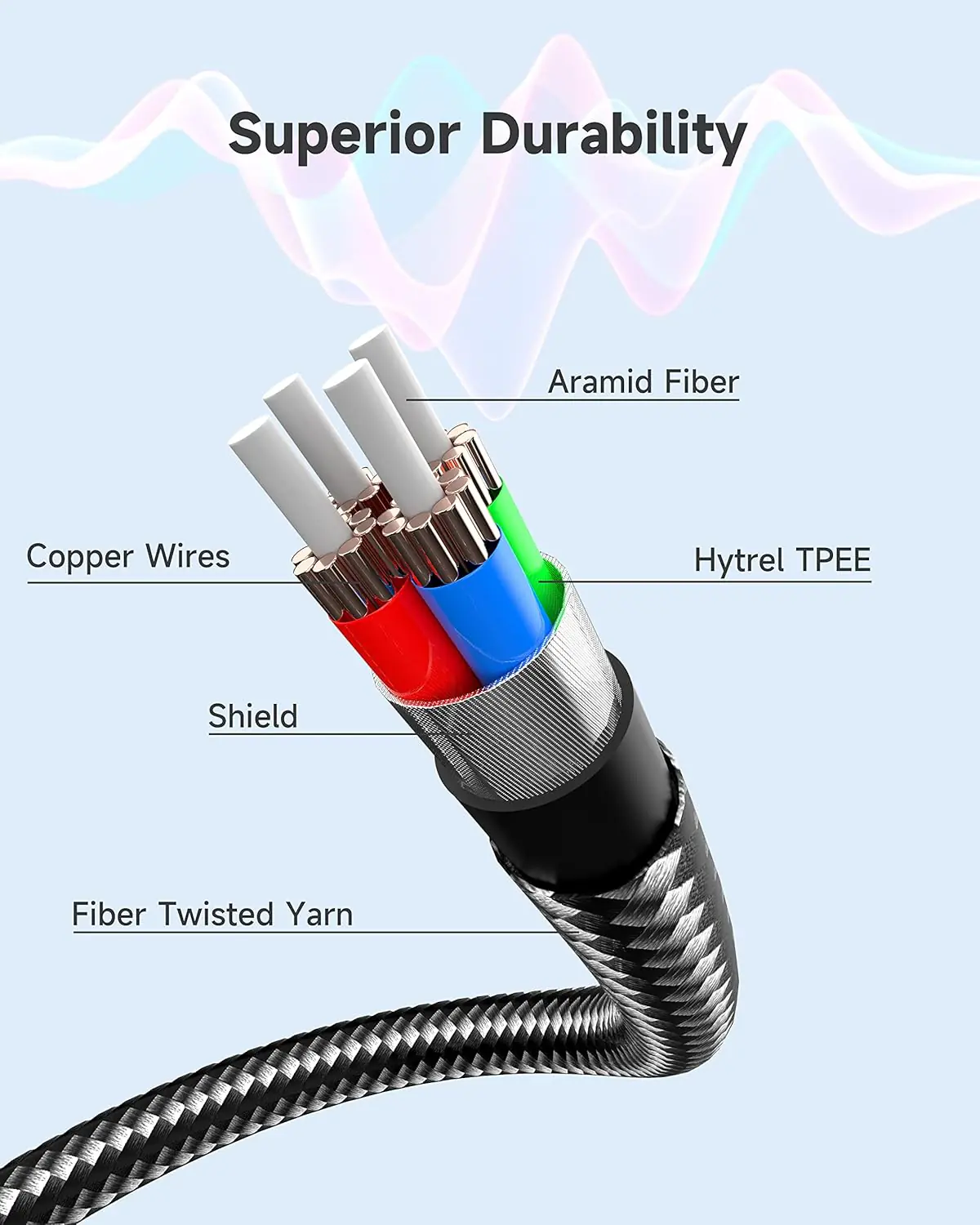 - Flexible & Durable: Slim and portable design, easy to carry around. nylon braided jacket and 10000+ bend lifespan make headphone splitter adding to the durability and tangle free
