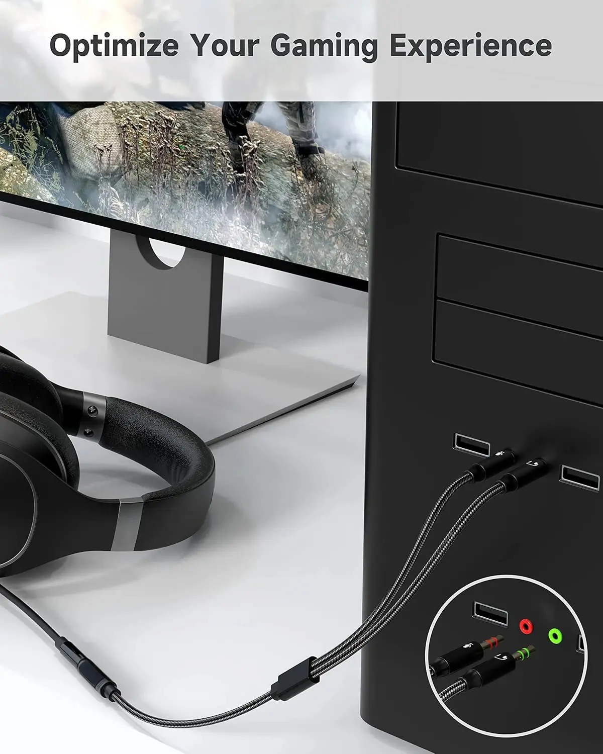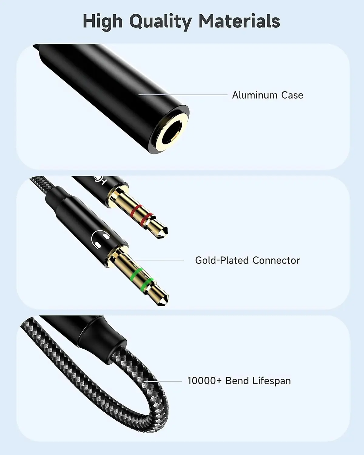 - Unparalleled Sound Quality: This headset splitter is with polished 24k gold-plated connectors, oxygen-free copper wire ensures higher audio transmission without signal loss and noise. so the headset adapter remains original sound quality, offers better gaming and communication experience