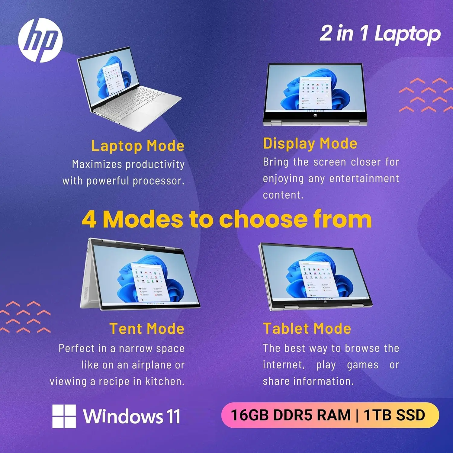 - 2-in-1 Flexibility: Convertible form factor with a 360° hinge for seamless transition between laptop, tent, stand, and tablet modes.