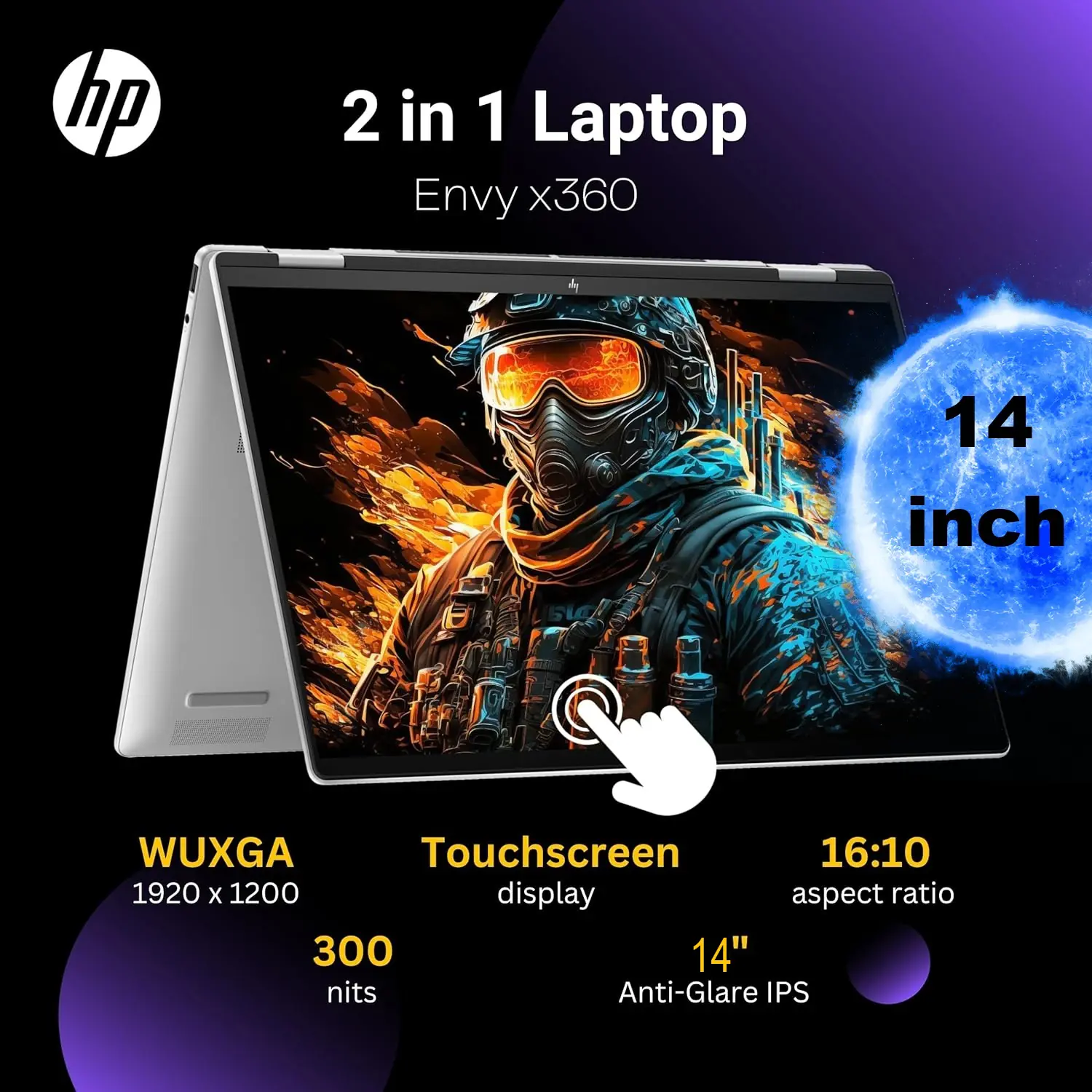 HP ENVY x360 14 inch 2-in-1 Intel® Core™ Ultra 7 155U | 16GB DDR5 RAM , 1TB NVMe™ SSD | 14” WUXGA IPS Touchscreen | Backlit Keyboard | Windows 11 | SILVER 14-fc0023dx