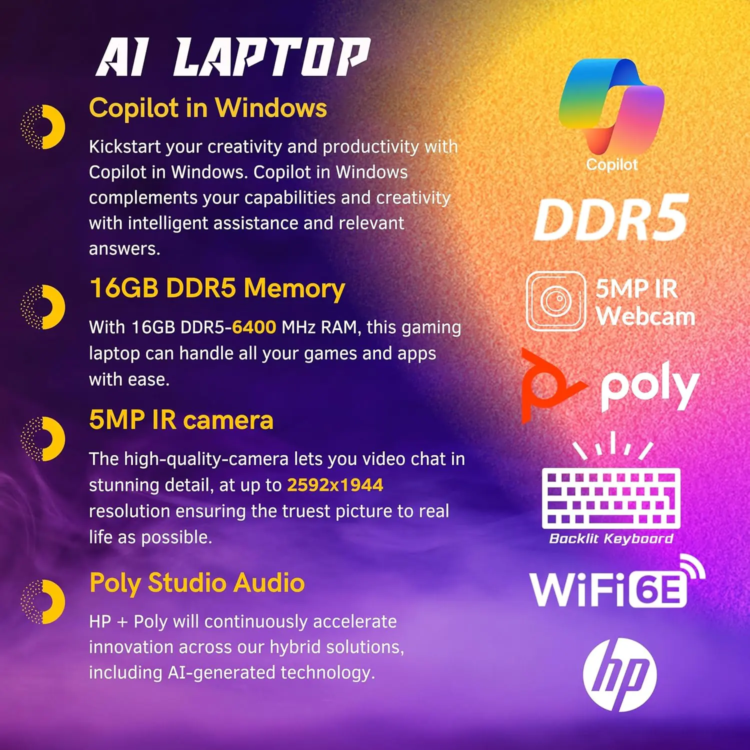 - 5MP IR Webcam + AI Noise Reduction: Sharp, studio-quality video calls with facial recognition and advanced sound filtering.