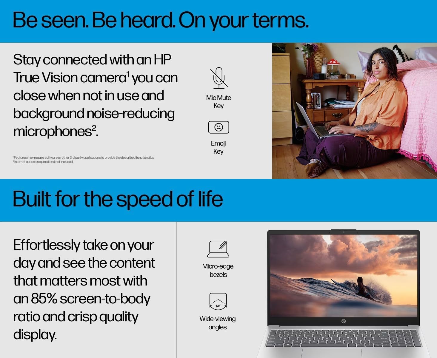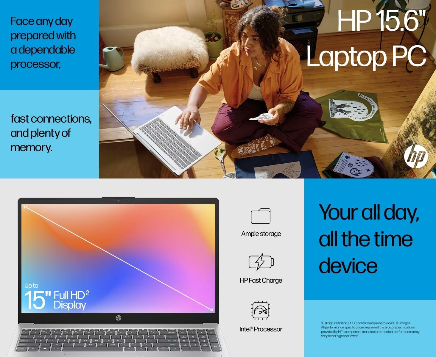 HP Intel® Core i7-1355U | 8GB DDR4 RAM ; 512GB SSD | 15.6 inch FHD IPS Display | Intel® Iris® Xᶱ Graphics | Backlit Eng./Ara. Keyboard | Free DOS 3.0 | Natural Silver ~ 15-fd0146ne
