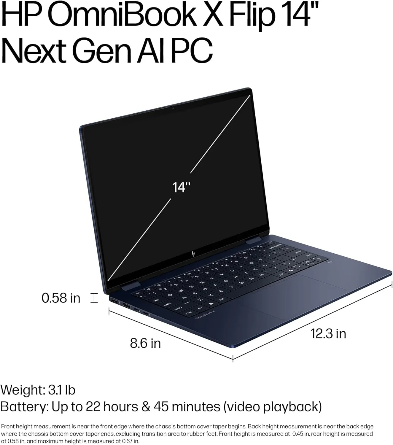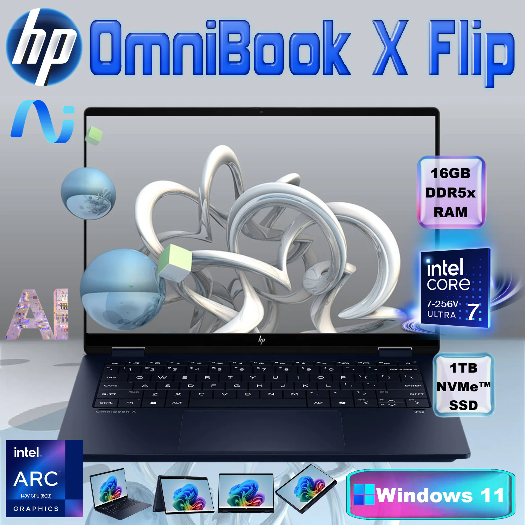HP OmniBook X Flip AI PC Intel® Core Ultra 7 256V | 16GB DDR5x RAM , 1TB NVMe SSD | Intel® Arc 140V GPU (8GB) | 14-inch 2K IPS TouchScreen | Backlit Keyboard | Intel® AI Boost (47 NPU TOPS) | Windows 11 | Atmospheric Blue 14-fm0023dx