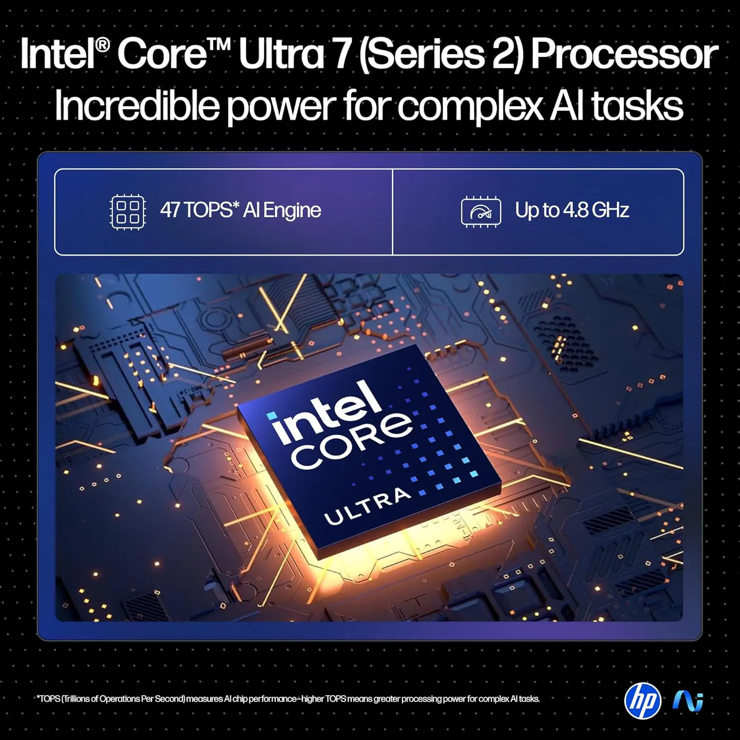 - Intel® Core™ Ultra 7 + AI Boost (47 TOPS): A neural-processing powerhouse designed to accelerate AI tasks, smart collaboration, and productivity-enhancing features.