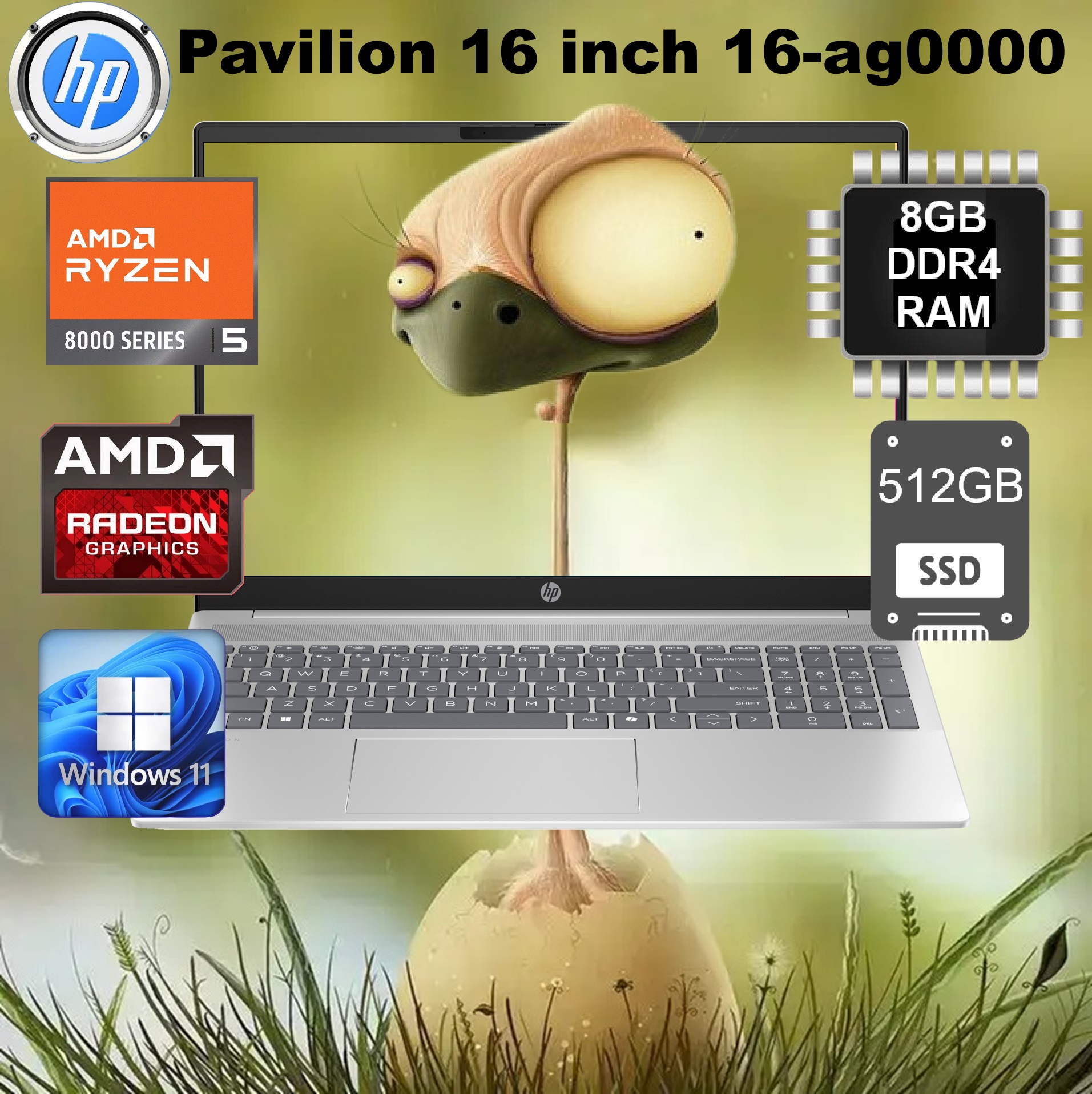HP Pavilion 16-ag0000 AMD Ryzen™ 5 8540U | 8GB DDR5 RAM ; 512GB SSD NVMe™ | 16 inch WUXGA IPS Display | AMD Radeon™ Graphics ; AMD FreeSync™ | Backlit Keyboard | Windows 11 | Silver | New Factory Refurb