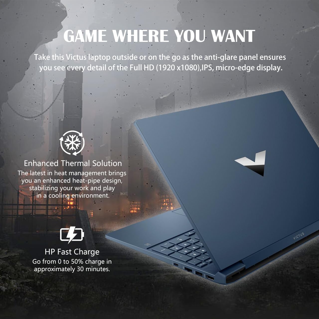 hp Victus Gaming Laptop 15-fa0033dx Intel® Core™ i5-12450H | 8 GB DDR4 RAM ; 512 GB SSD | RTX™ 3050 , 4 GB | 15.6″ FHD Display 144 Hz | Windows 11 | Backlit Keyboard | (9T9R8UA) Performance Blue