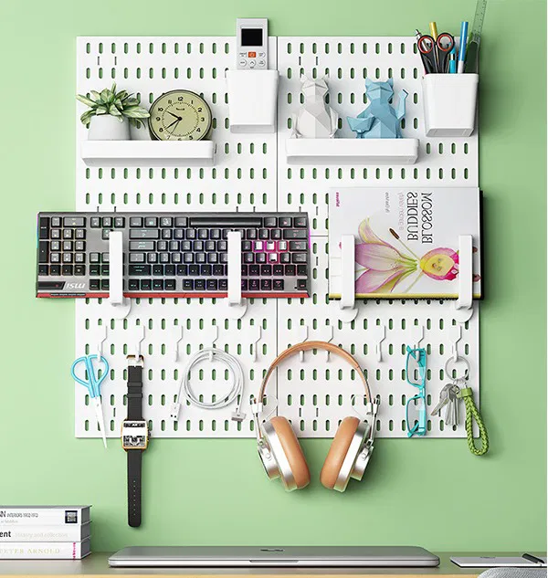 - Modular 4-Panel Set – Includes four 30x30cm White pegboard panels that can be arranged together or separately, allowing you to customize your storage wall to suit any space.