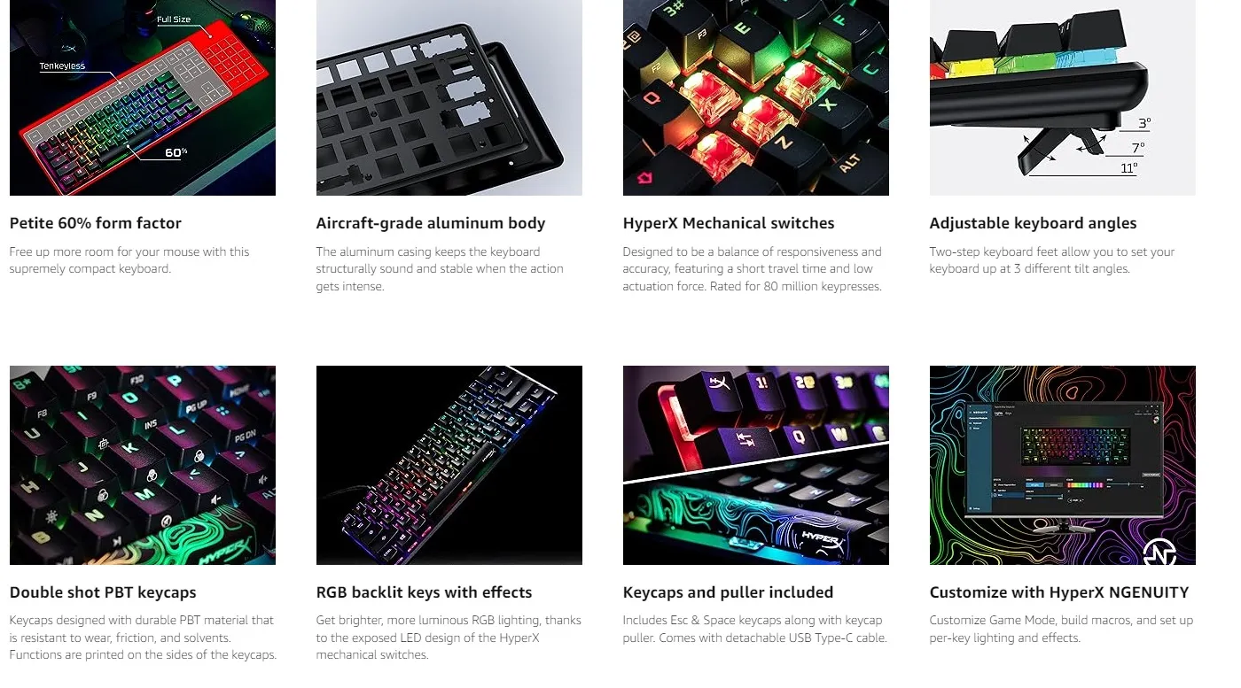 - Advanced customization with HyperX NGENUITY: Customize Game Mode, build macros, and set up per-key lighting and effects.