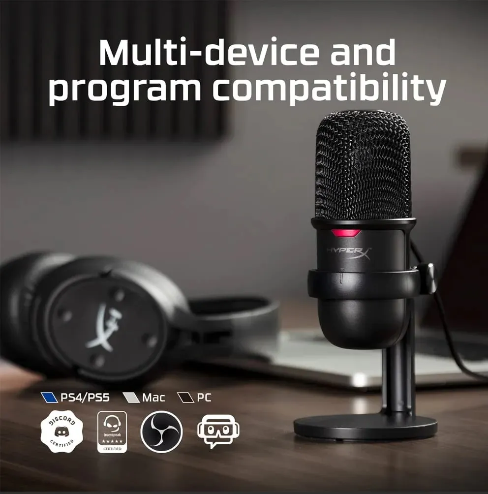 HyperX SoloCast – USB Condenser Gaming Microphone, for PC, PS4, PS5 and Mac, Tap-to-Mute Sensor, Cardioid Polar Pattern, great for Streaming, Podcasts, Twitch, YouTube, Discord,Black