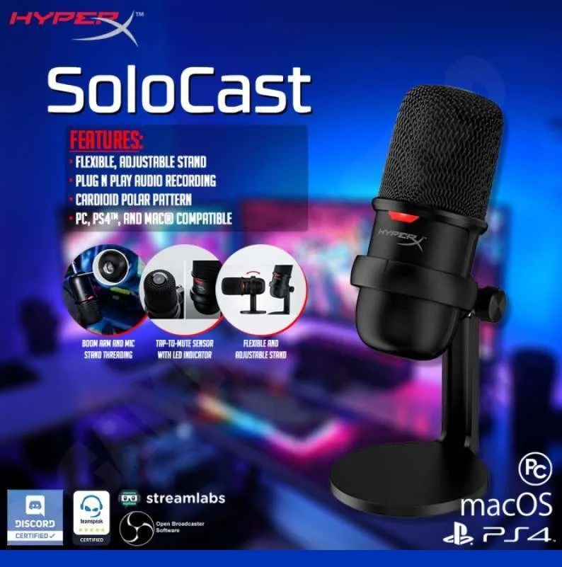 HyperX SoloCast – USB Condenser Gaming Microphone, for PC, PS4, PS5 and Mac, Tap-to-Mute Sensor, Cardioid Polar Pattern, great for Streaming, Podcasts, Twitch, YouTube, Discord,Black