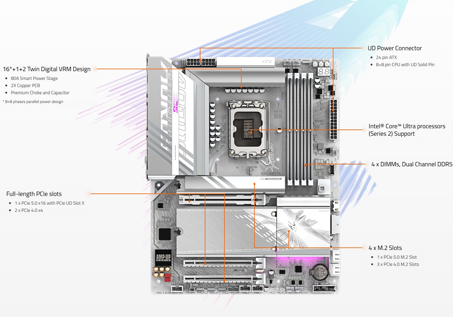- PCIe UD Slot XĀ : PCIe 5.0 x16 slot with 10X strength for graphics card