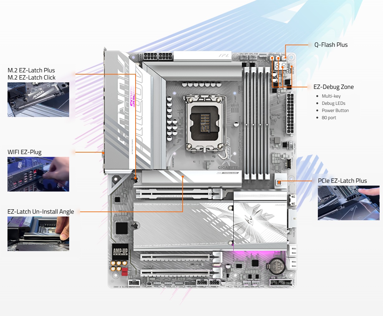 - EZ-Latch PlusĀ : PCIe and M.2Ā slots with Quick Release & Screwless Design