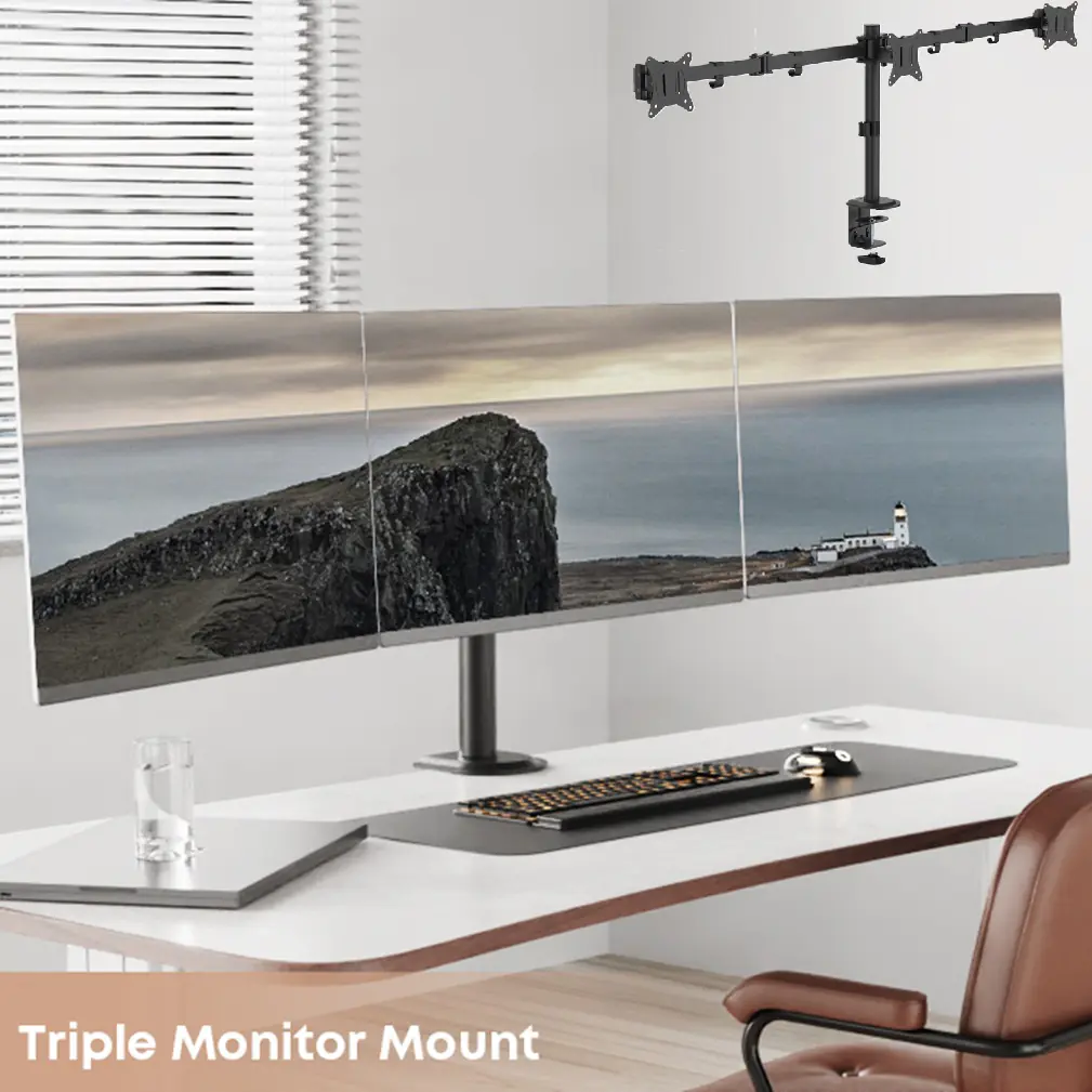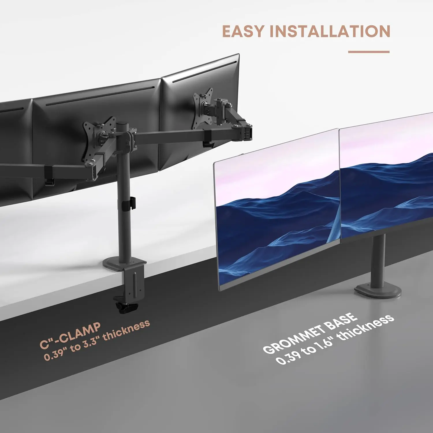 Triple-Monitor Steel Articulating Monitor Mount 3 Monitor Desk Mount for 3 Screens from 17 inch to 27 inches Screen Size , Fully Adjustable VESA Monitor Stand , Clamp or Grommet Installation | BLACK LDT66-C034