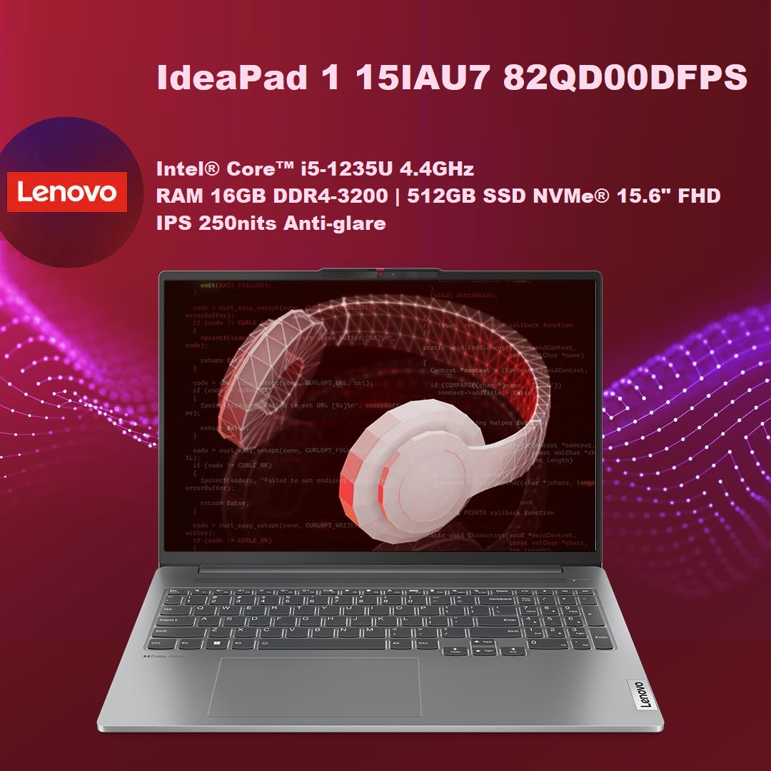 Lenovo IdeaPad 1 15IAU7 82QD00DFPS | Intel® Core™ i5-1235U 4.4GHz | RAM 16GB DDR4-3200 | 512GB SSD NVMe® | 15.6″ FHD IPS 250nits Anti-glare | English Keyboard | DOS | Cloud Grey