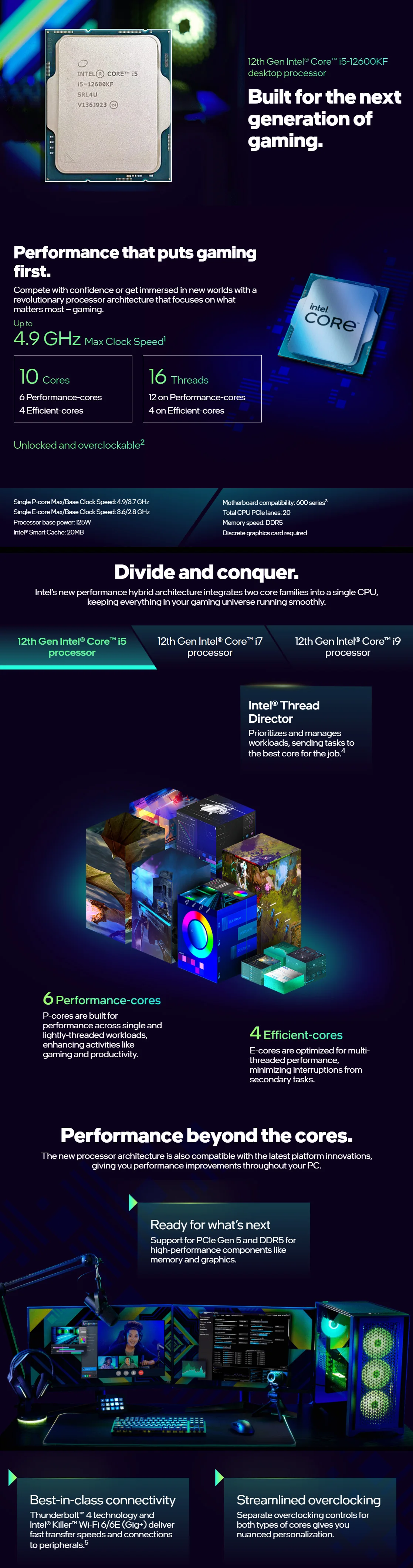 Intel Core i5-12600KF – Core i5 12th Gen Alder Lake 10-Core (6P+4E) 3.7 GHz LGA 1700 125W Desktop Processor TRAY – USED