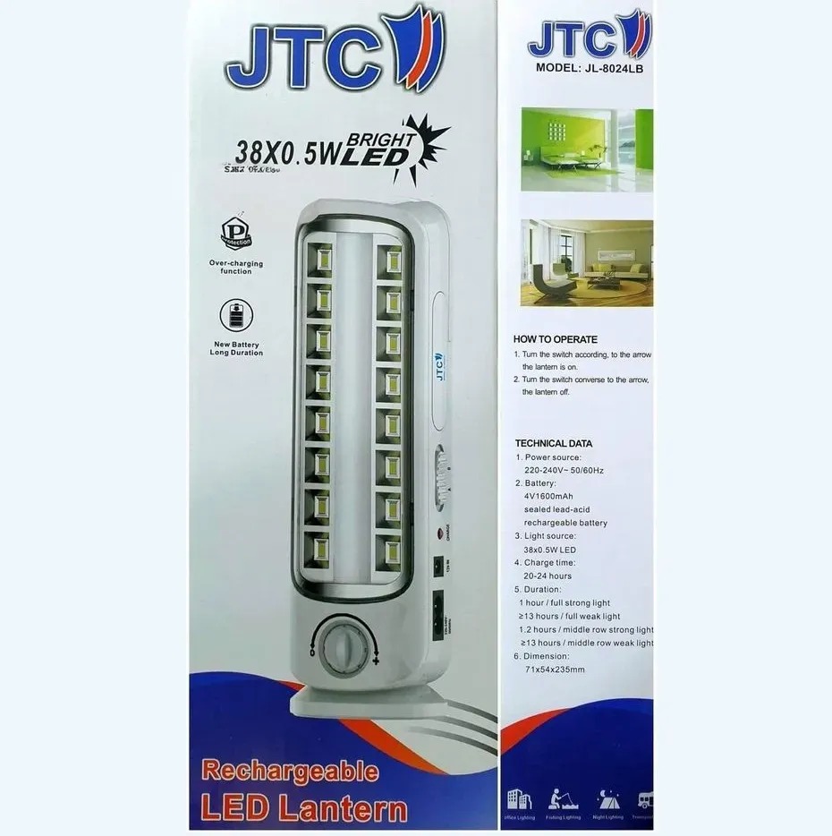 JJTC Portable Rechargeable LED Torch – 38 LEDs Plus Middle Light Bar – 1,600mAh Rechargeable Battery (Sealed lead-acid, 4V) – Up to 13 hours Operating Time – Dimmable – Top Handle – Wall Mountable | WHITE JTC-JL-8024LB