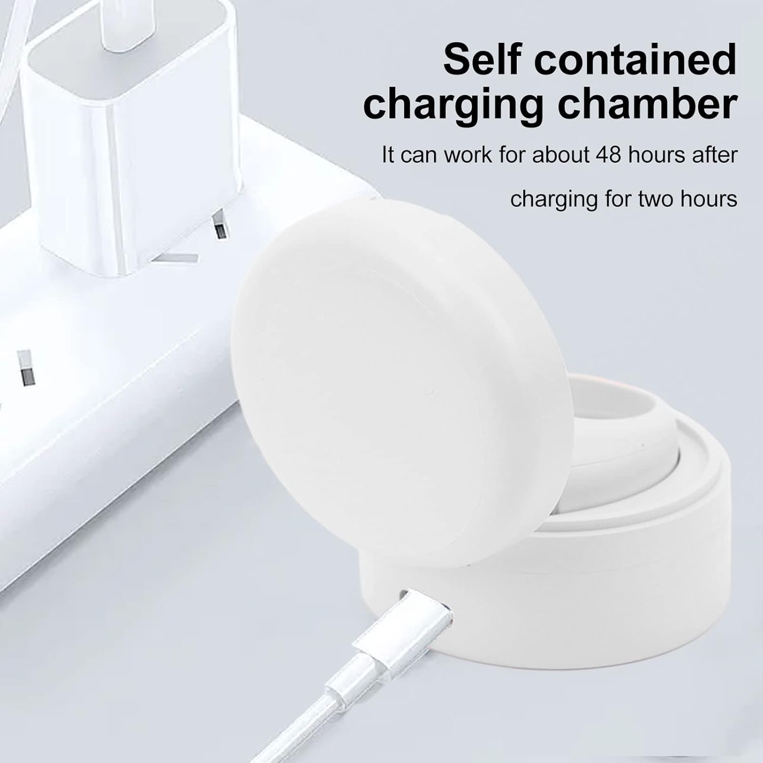 Equipped with a built-in rechargeable battery, the ring offers up to 48 hours of continuous use on a single charge. The included charging case extends total usage time to approximately 128 hours, ensuring long-lasting convenience for daily use and travel.
