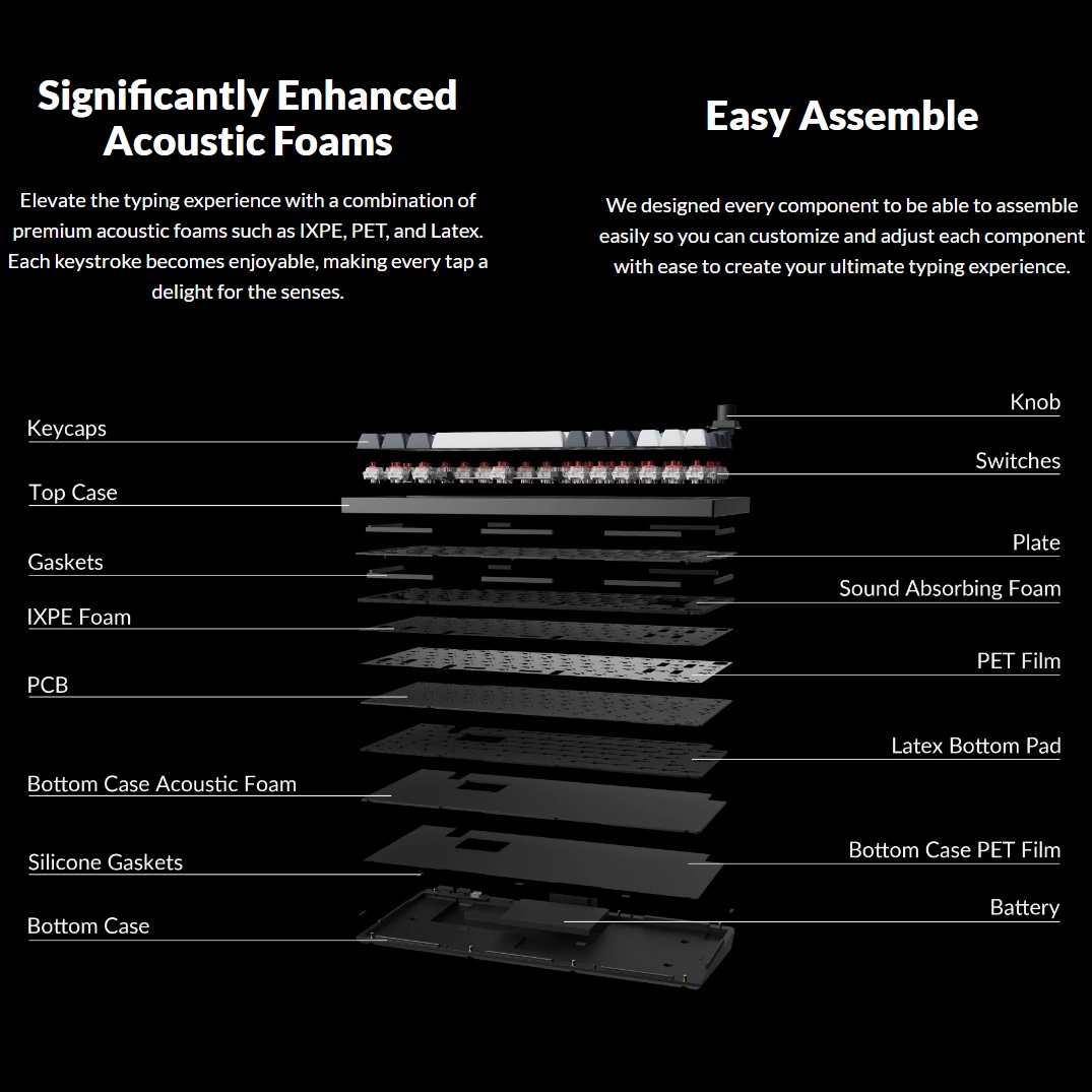 • 【Easy Assembly】Designed for effortless customization, every component of the Q1 Max is easily assembled, empowering you to create your ultimate typing experience with minimal effort.