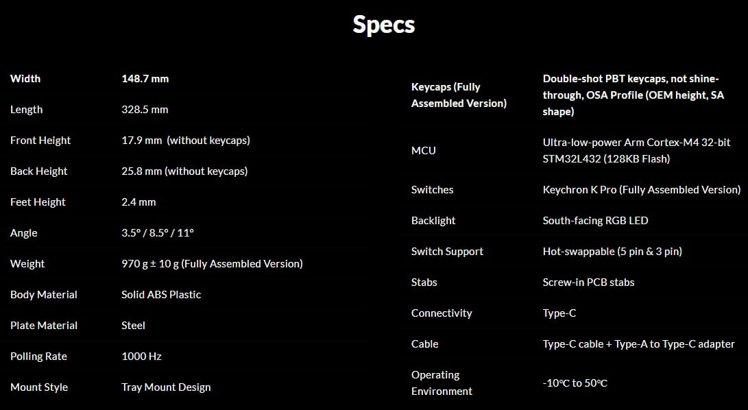 • These double-shot PBT keycaps have a similar height to the OEM profile and has an SA-like shape. We named it the OSA (OEM spherical angled) keycap. The PBT keycaps will provide excellent oil resistance, enhance the type feel, and prevent the legends from fading out.