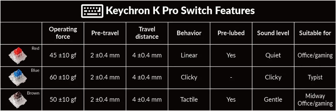 Hot-swappable Yes. Compatible with most of the 3 pin & 5 pin MX mechanical switches such as Gateron, Cherry MX, Kailh, etc.
