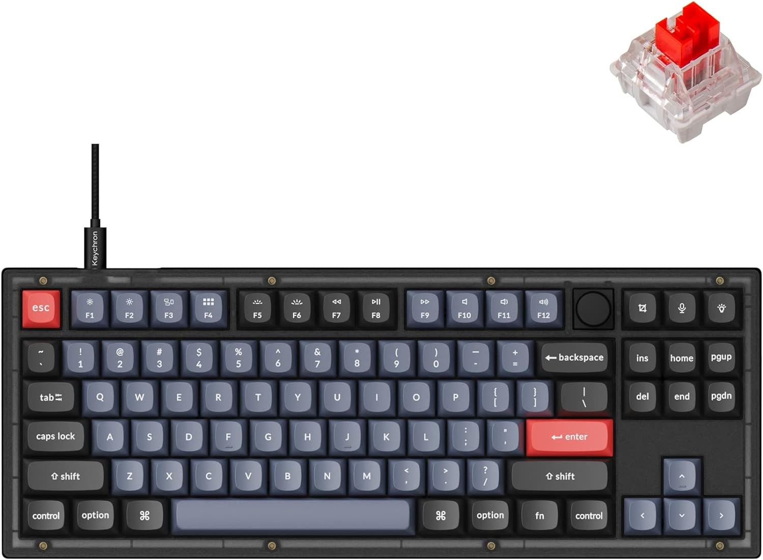 Keychron V3 Wired Custom Mechanical Keyboard Knob Version, TKL QMK/VIA Programmable Macro with Hot-swappable Keychron K Pro Red Switch Compatible with Mac Windows Linux (Frosted Black-Translucent)