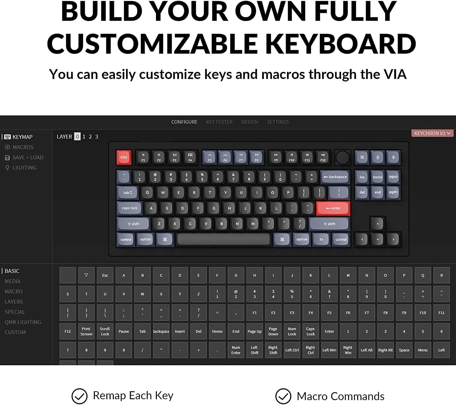 - With the classic TKL 80% layout, double-shot PBT keycaps, screw-in stabs and QMK/VIA support, theV3 is designed for premium typing comfort and endless possibility.