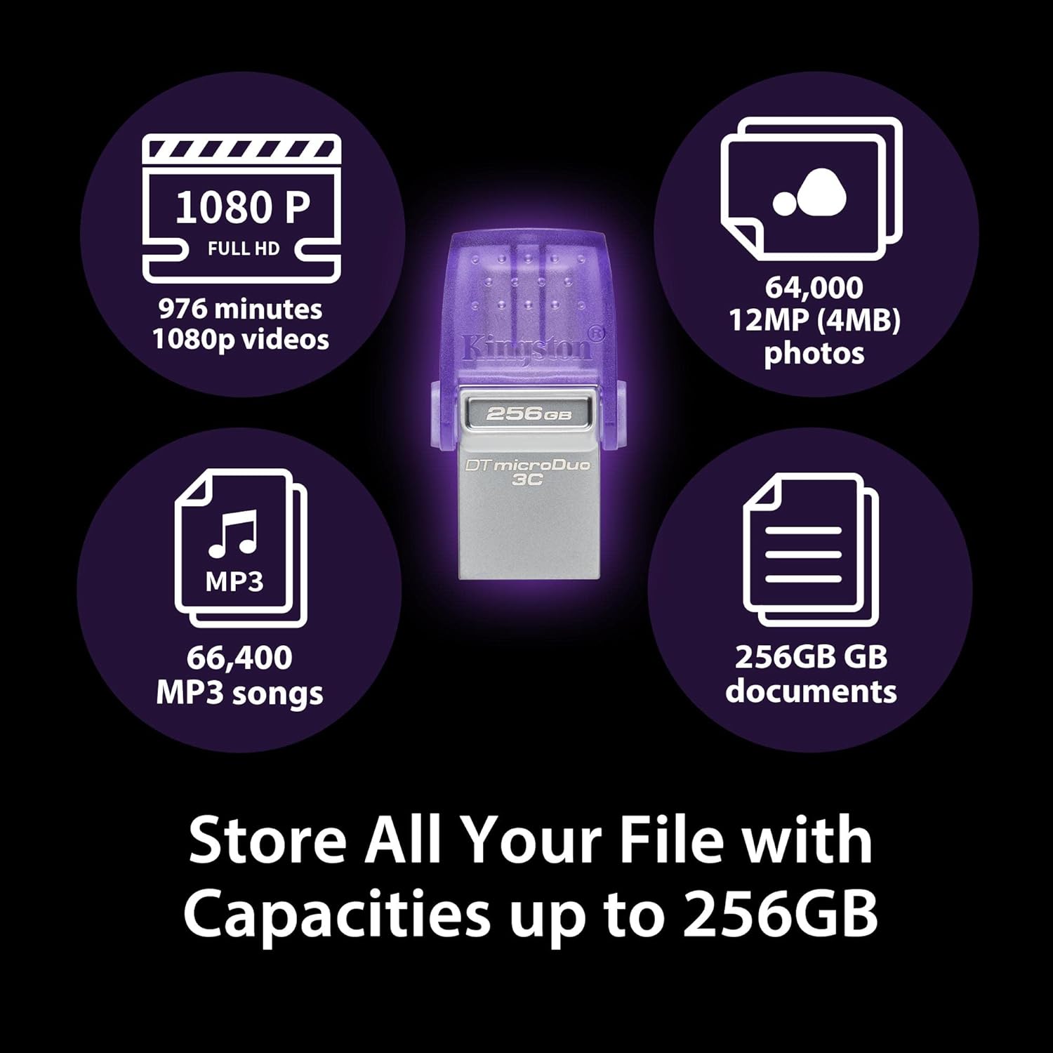 Kingston DataTraveler microDuo 3C 256GB USB-C & USB-A Flash Drive | Speeds up to 200 MB/s | USB 3.2 Gen 1 | Duo Connector | DTDUO3CG3/256GB