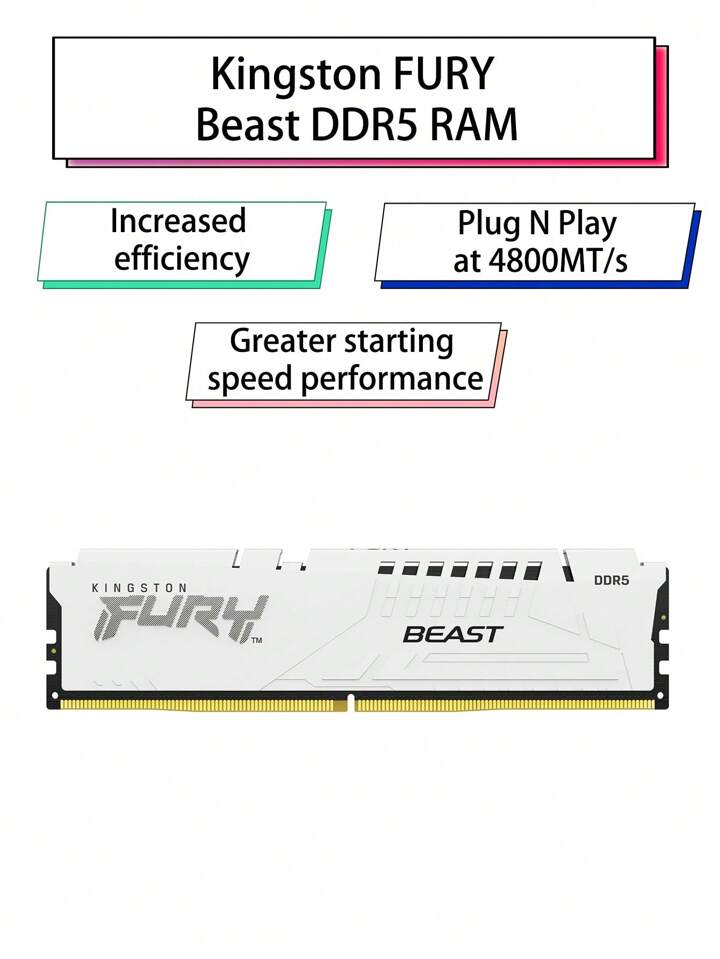 Kingston FURY Beast White 16GB 5600MT/s CL40 DDR5 XMP DIMM | Overclocking | Plug N Play | Intel XMP 3.0 | Single Module | KF556C40BW-16