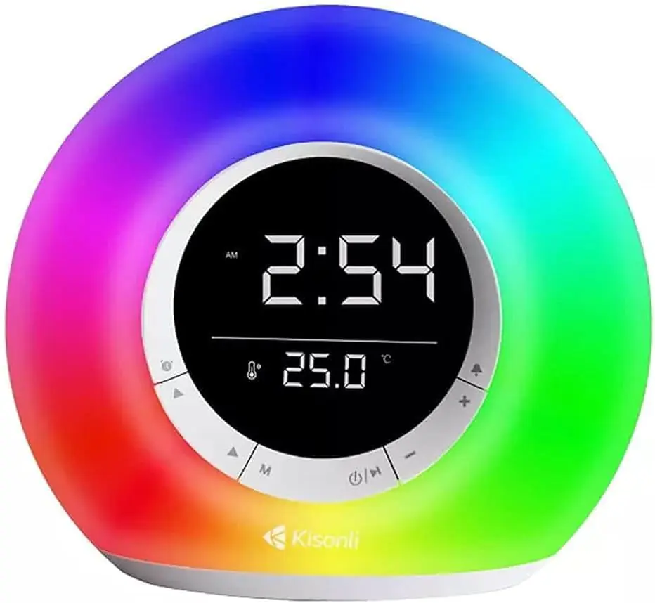Enjoy customizable lighting with RGB color cycles and warm night light modes. Easily toggle using intuitive touch controls for ambiance that matches your mood. - Smart Clock Features with LCD Display