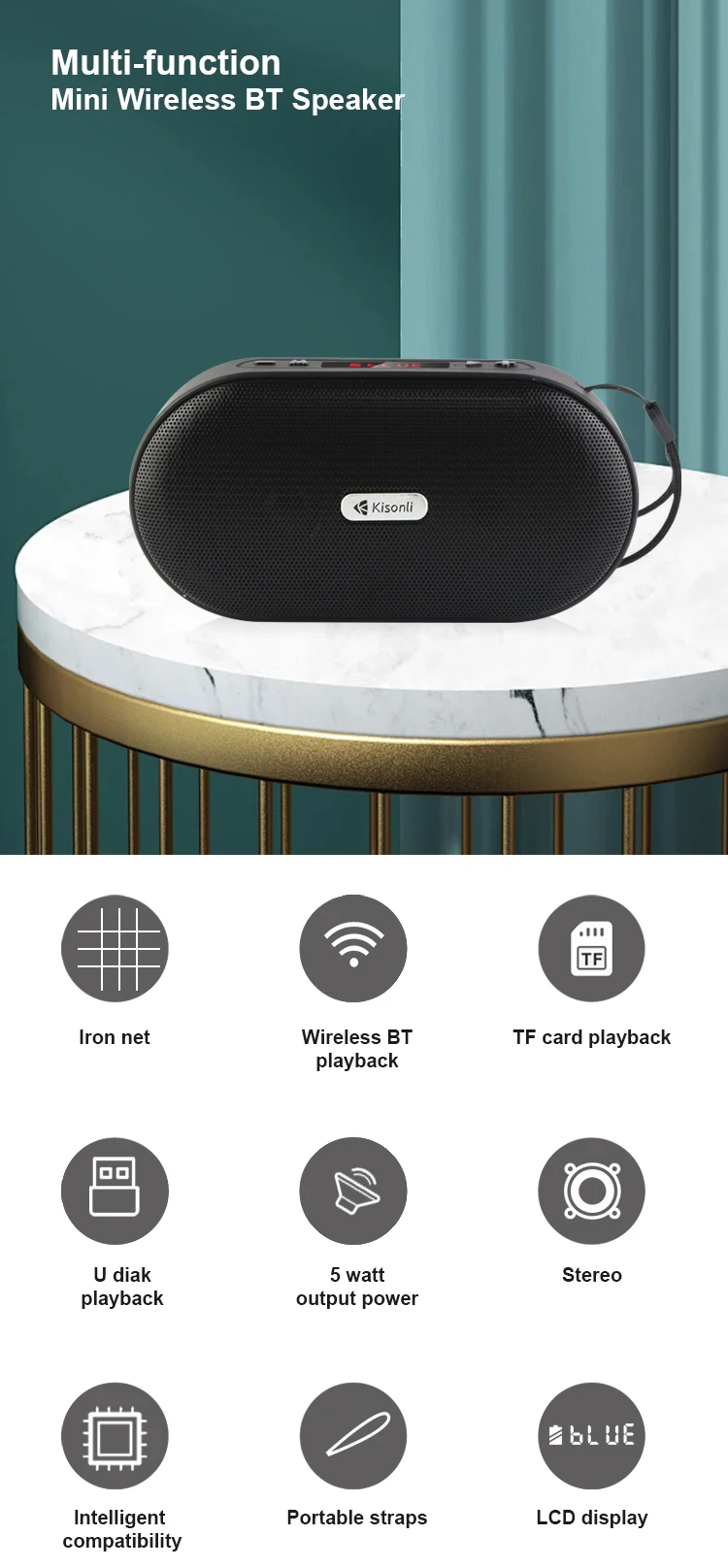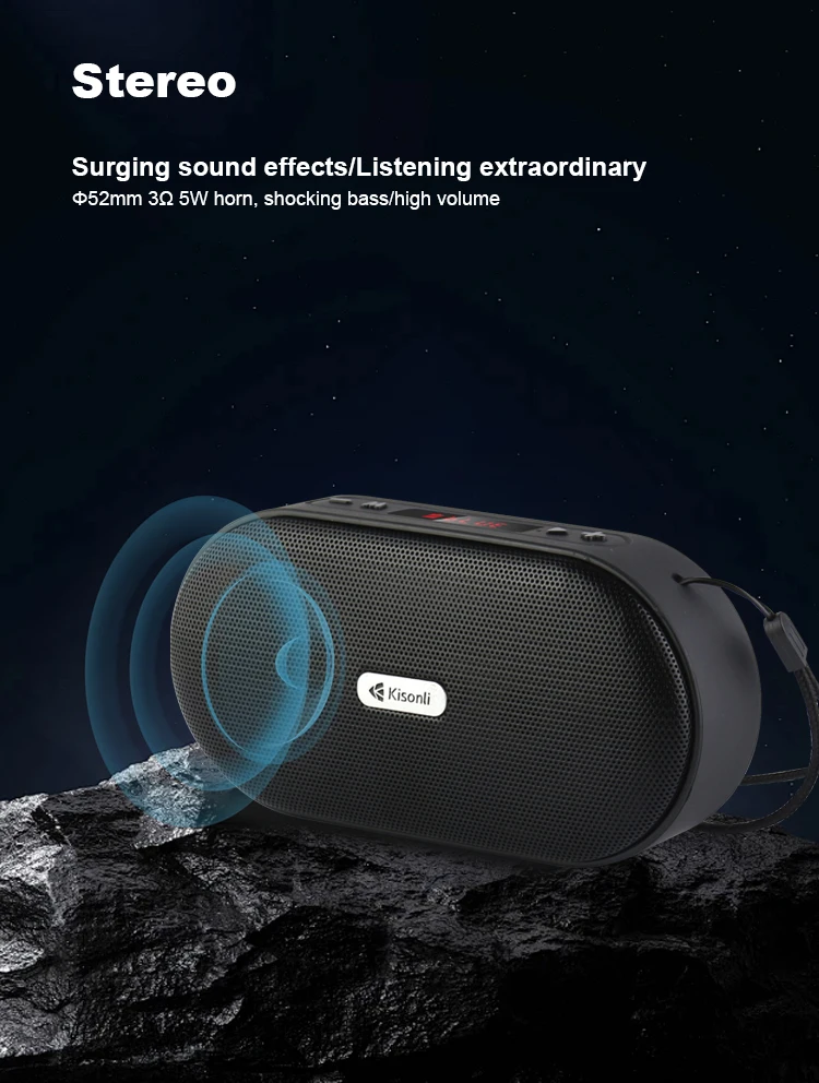Despite its portable form factor, the KISONLI S8 Plus delivers crystal-clear 5W audio, perfect for streaming your favorite music at home, outdoors, or at parties. -