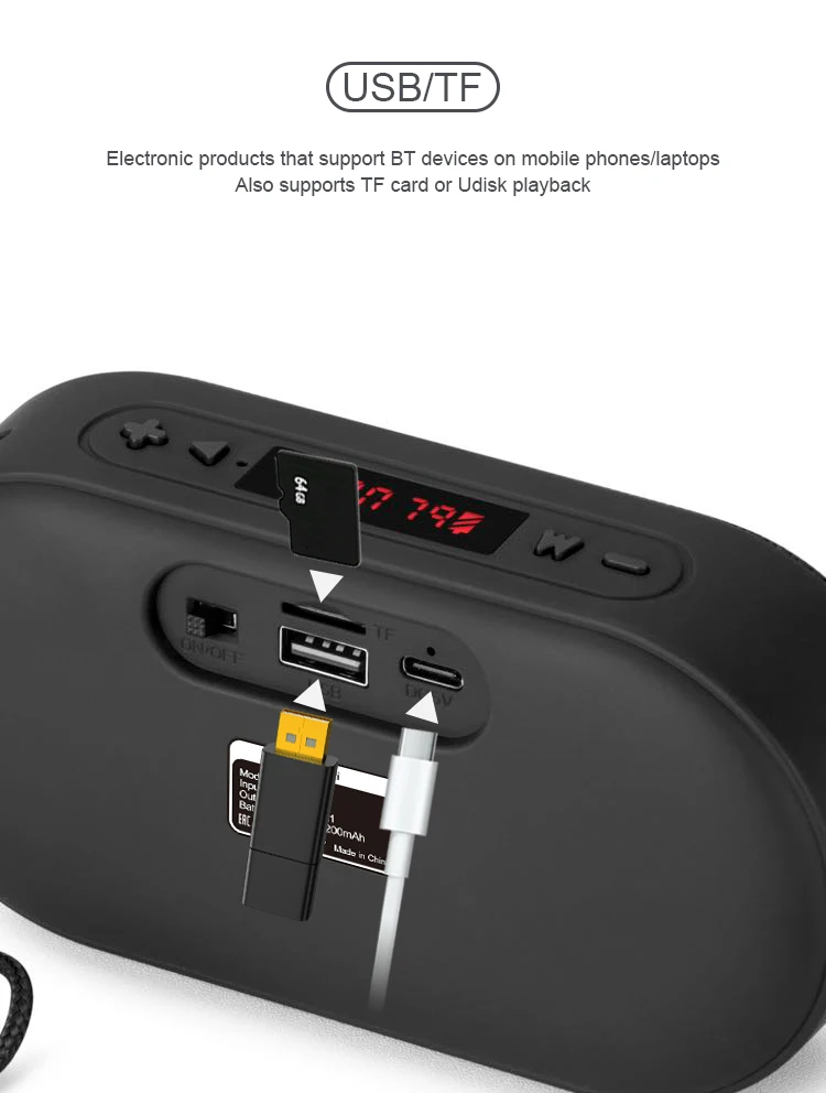 Supports playback from USB drives, TF cards, FM radio, and TWS pairing, offering multiple ways to enjoy your music — even without a phone connection. -