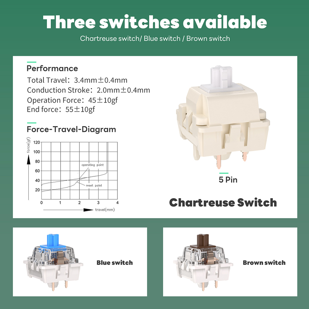 - Hot swappable mechanical keyboard – Hot-swap PCB allows you to replace 3 pins/5 pins switches freely. Enjoy the fun of making your own unique keyboard.