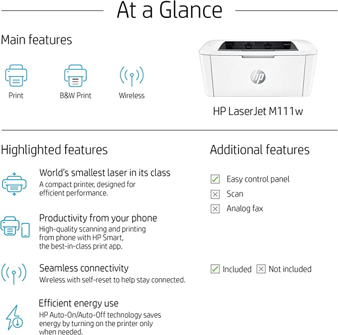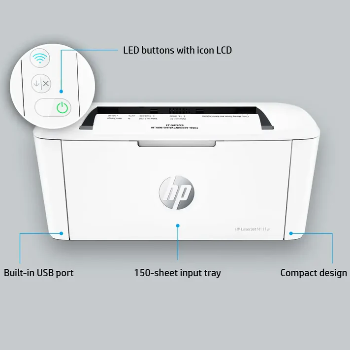 HP LaserJet M111w Black & White Multifunction Printer, Wireless & Mobile Printing, 600 x 600 dpi Resolution, Print speed up to 20 ppm, 8000-page Monthly Duty Cycle ,USB / Wireless Connectivity | 7MD68A White