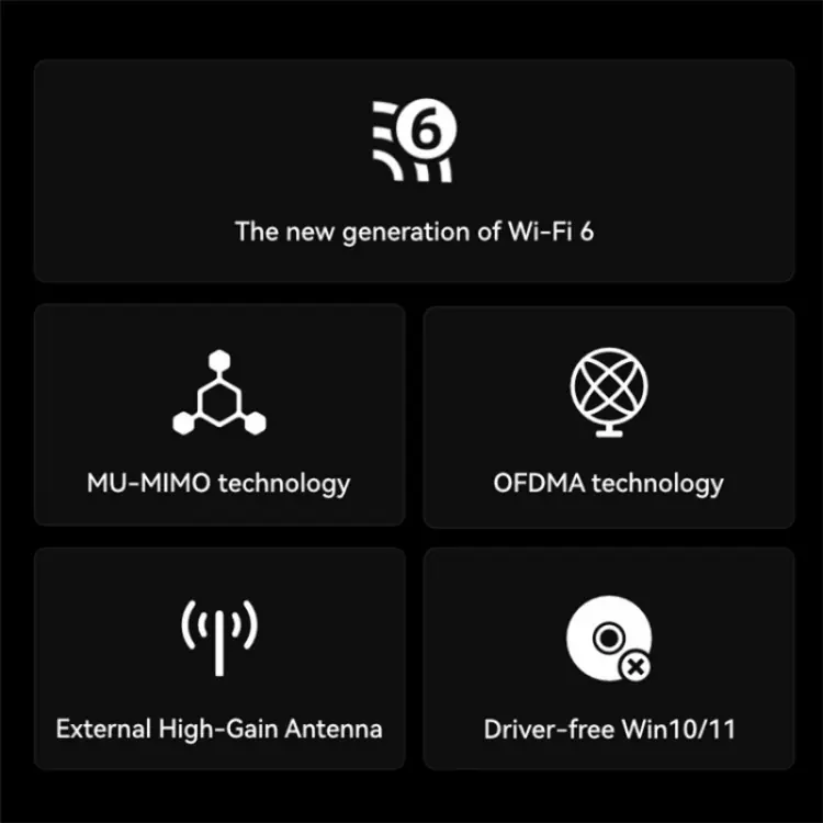 - Wi-Fi 6 Standard: Supports the latest Wi-Fi 6 technology, offering faster connection speeds and improved network efficiency.