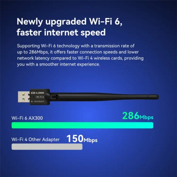 LB-Link AX300 Wi-Fi 6 Wireless USB Adapter 2.4GHz with 300Mbps Speed, External 5dBi High Gain Antenna, WPA2 Security, Compatible with Win7/10/11 & Linux for Desktop and Laptop Use | BL-WN300AX