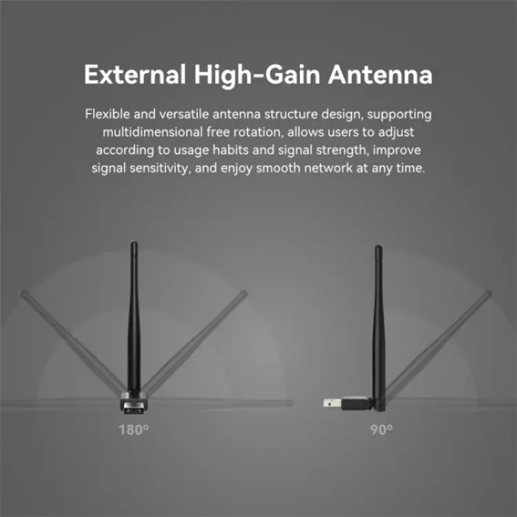 - External High-Gain Antenna: Features a 5dBi external antenna for better signal range, stability, and reliable wireless performance.