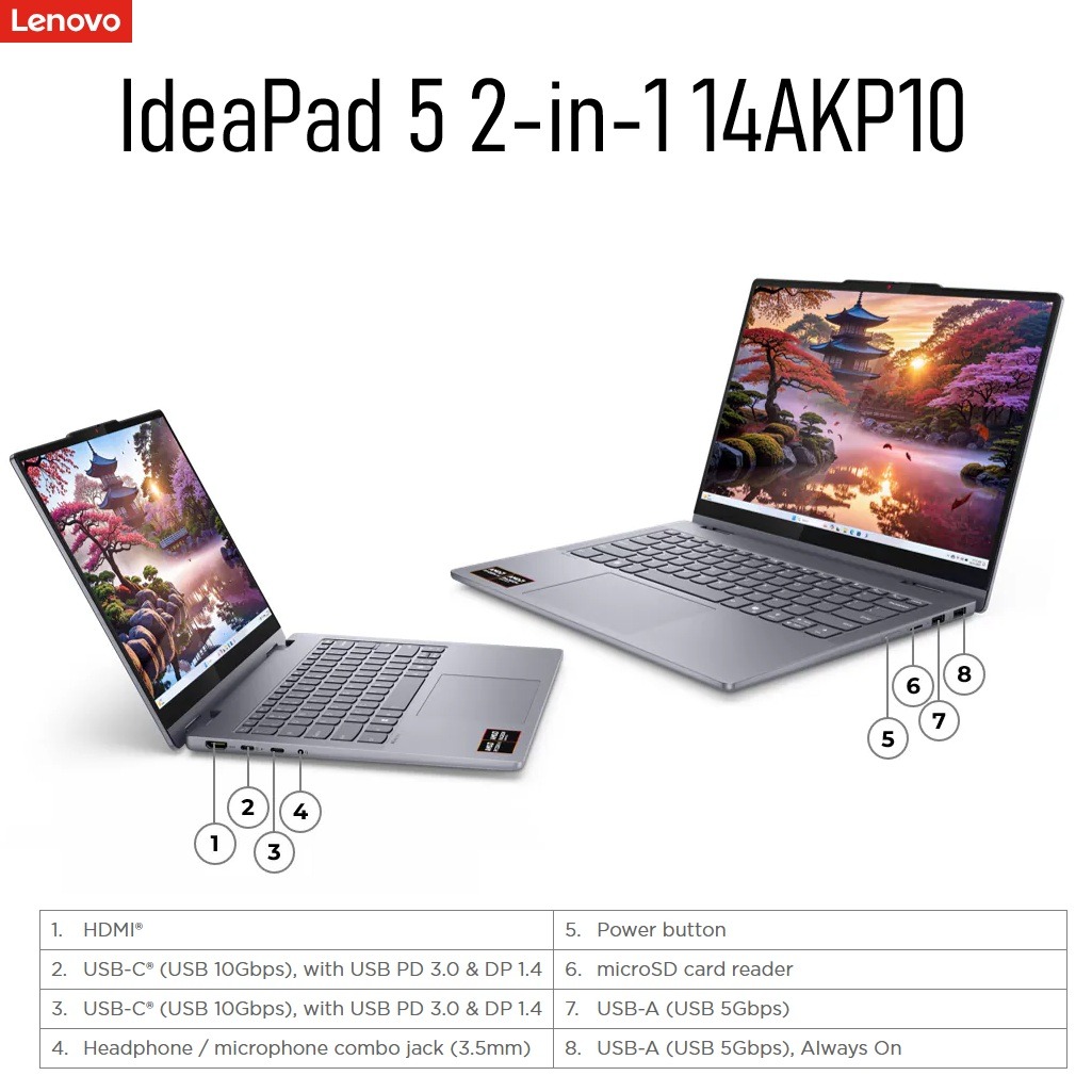 Lenovo IdeaPad 5 2-in-1 14AKP10 – AMD Ryzen AI 7 350 up to 50 TOPS | 16GB LPDDR5x RAM ; 1TB SSD NVMe® | AMD Radeon™ 860M Graphics | 14-inch WUXGA IPS Touchscreen | Backlit Keyboard | Windows 11 |Cosmic Blue ~ OPEN BOX