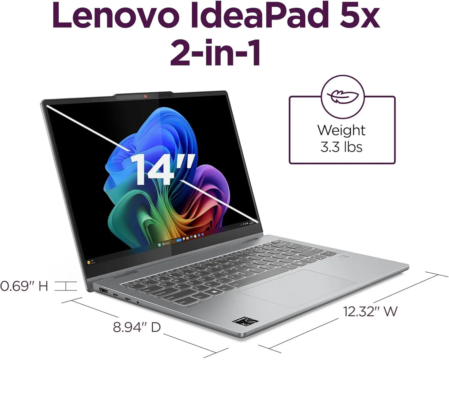 LENOVO IdeaPad 5 2-in-1 14Q8X9 Snapdragon® X Plus | 16GB DDR5x RAM ; 1TB SSD NVMe® | 14″ WUXGA OLED Touchscreen | Qualcomm® Adreno™ GPU | Backlit Keyboard | Windows® 11 | Luna Grey