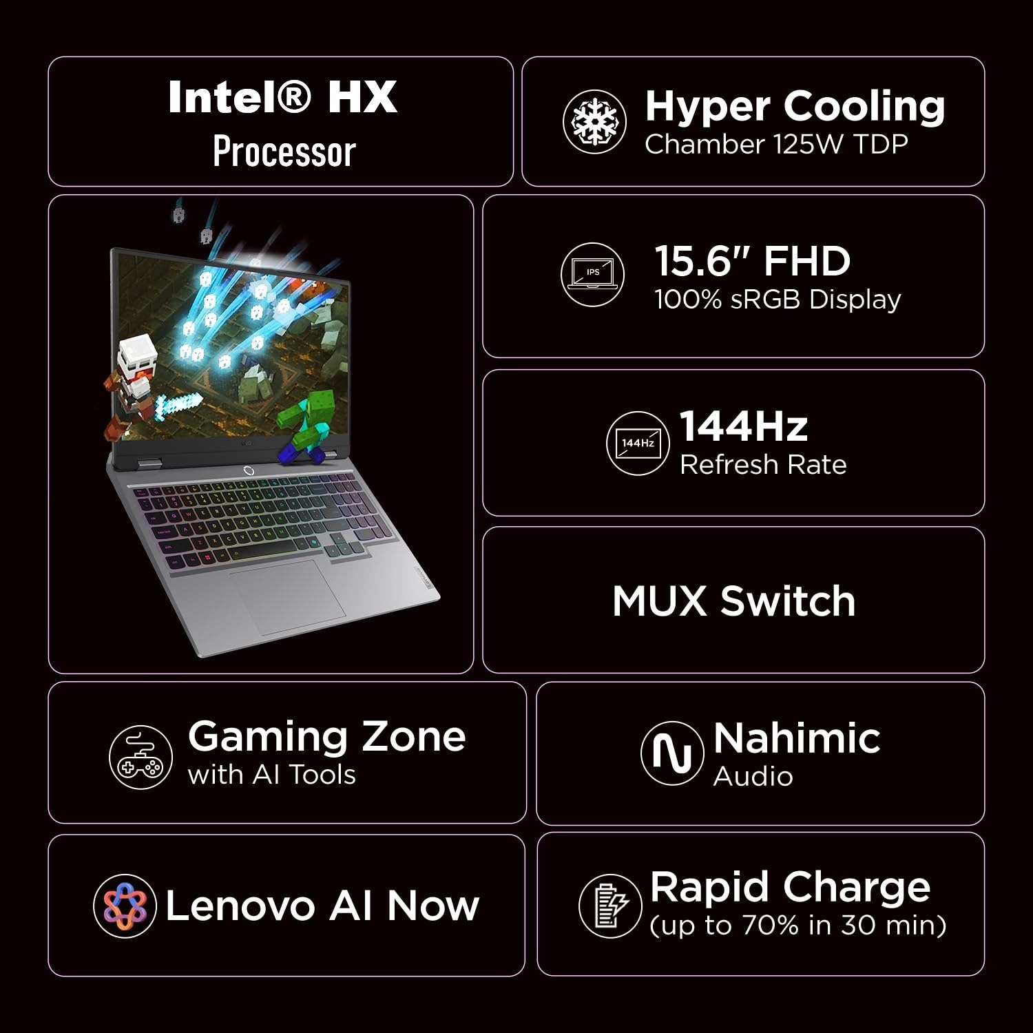 Lenovo LOQ 15IRX10 AI-Powered : Intel® Core i7-13650HX | 32GB DDR5 RAM , 1TB NVMe SSD | RTX 5070 (8GB) | 15.6-inch FHD 144Hz G-SYNC IPS Display | 24-Zone RGB Backlit Eng/Ara Keyboard | DOS | Luna Grey
