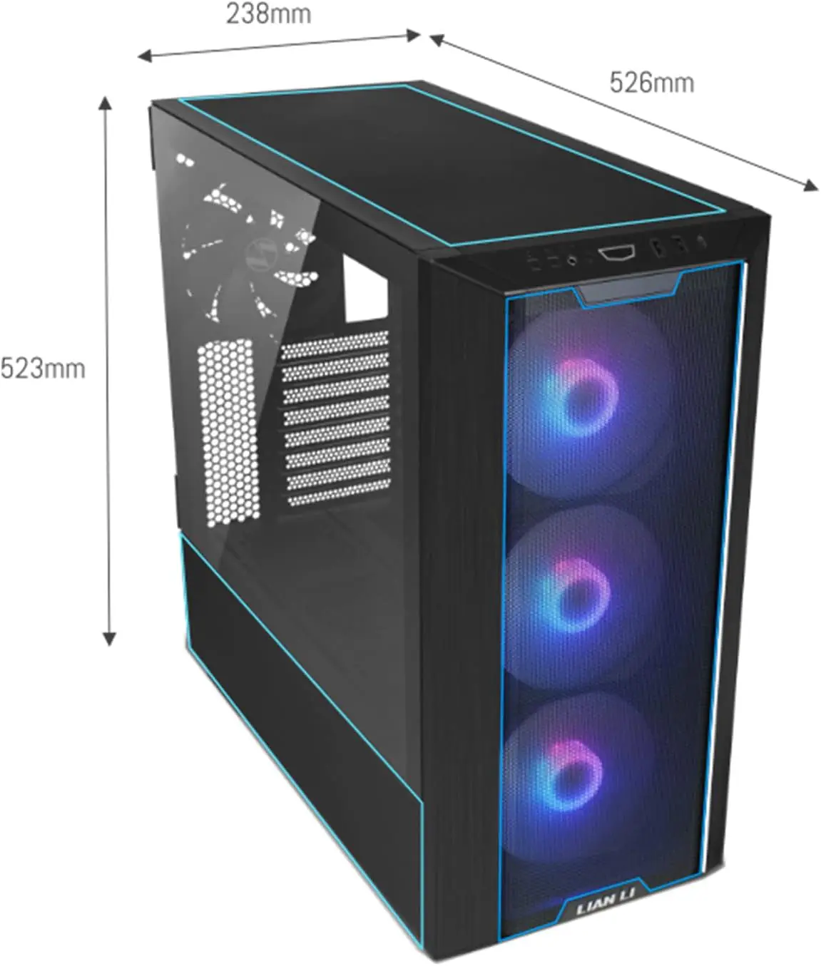 LIAN LI LANCOOL III 3R-X Black E-ATX Mid Tower, 4×140mm ARGB Fans, Mesh Panels, Hinged Glass, 12-Drive Support, 420mm Radiator, USB-C, Advanced Cable Management