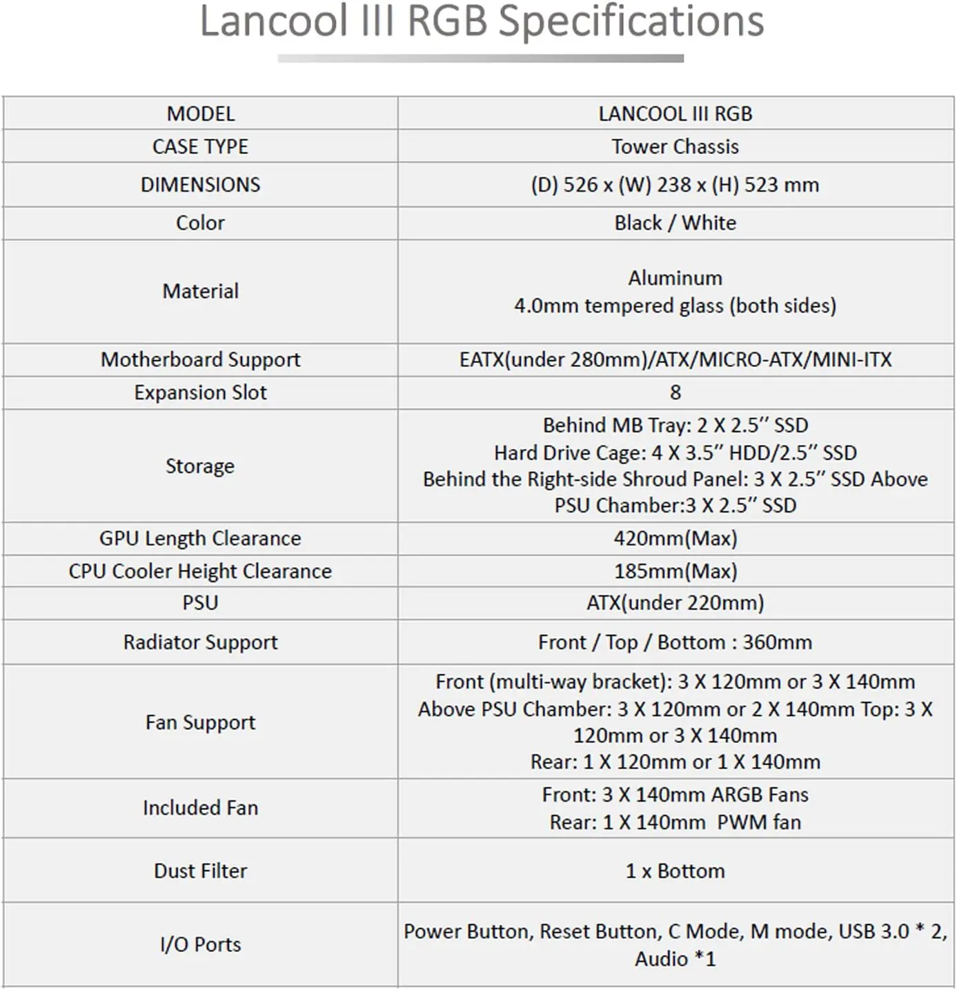 LIAN LI LANCOOL III 3R-X White E-ATX Mid Tower, 4×140mm ARGB Fans, Mesh Panels, Hinged Glass, 12-Drive Support, 420mm Radiator, USB-C, Advanced Cable Management