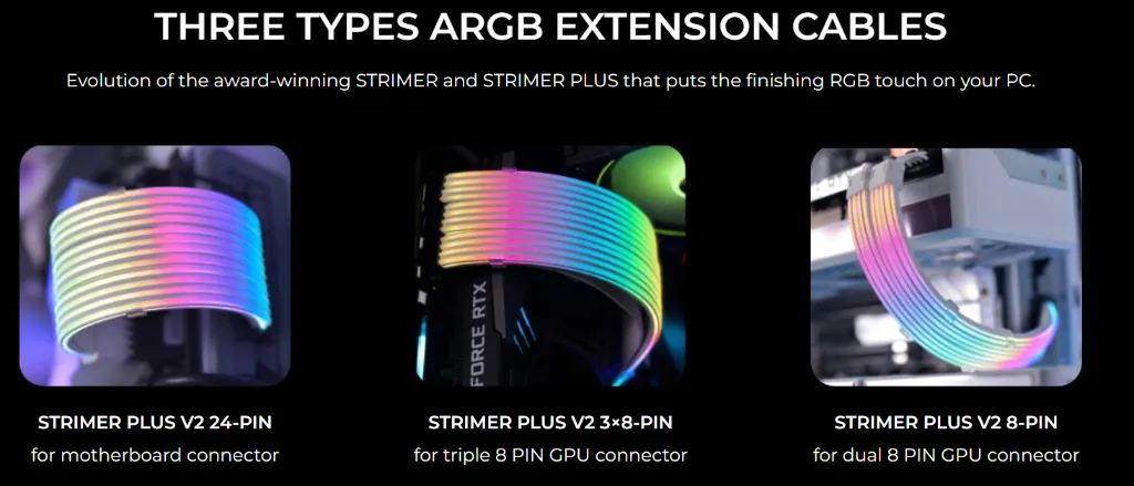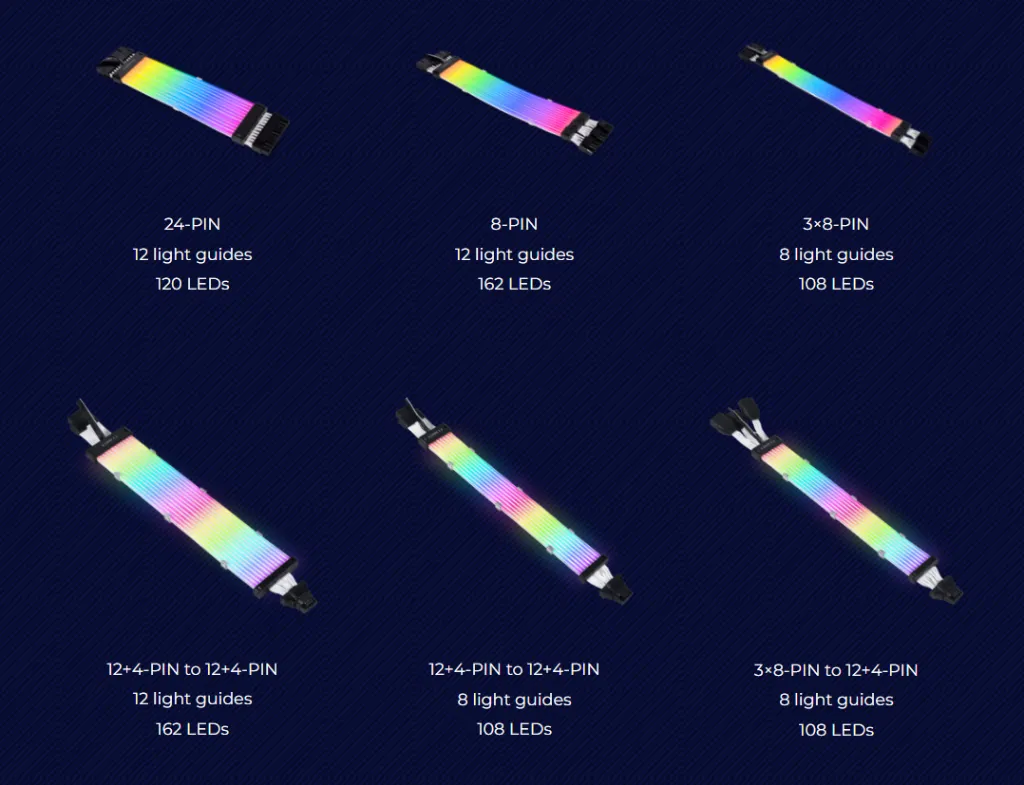 Available for motherboard 24-pin, GPU dual 8-pin, and GPU triple 8 pin.