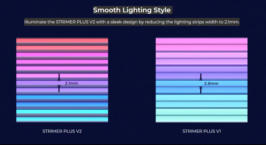 Illuminate the STRIMER PLUS V2 with a sleek design by reducing the lighting strips width to 2.1mm.